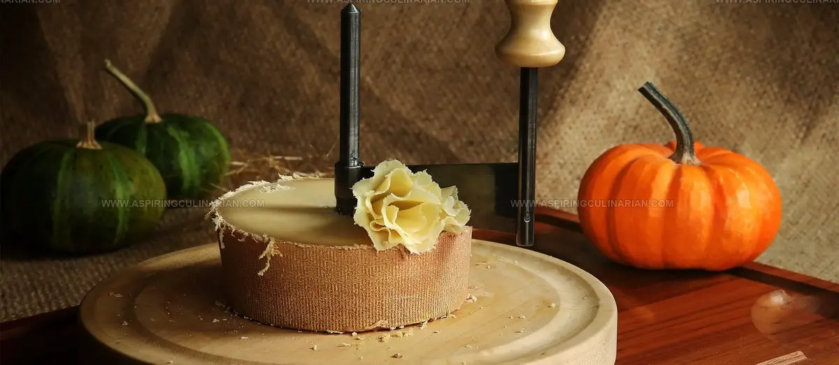 Special girolle tools create delicate cheese rosettes by shaving instead of cutting traditional wedges.