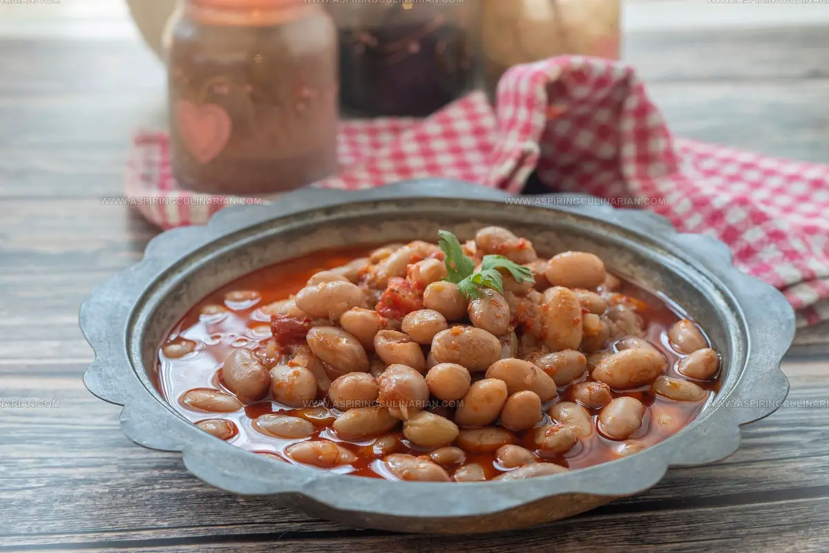 Mediterranean kitchens celebrate this vegetarian meze with tender borlotti beans slowly simmered in rich tomato sauce.