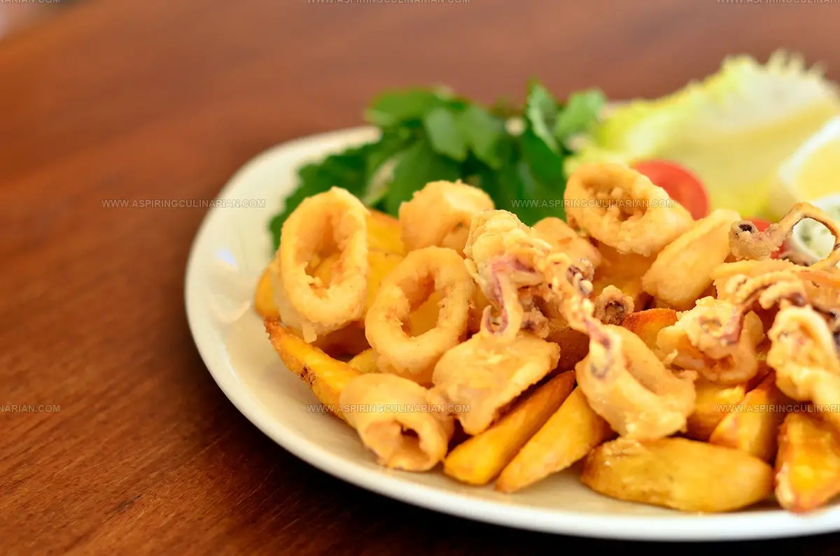 Mediterranean fishermen perfected this simple seafood dish by carefully cleaning and cutting fresh squid into thick rings.