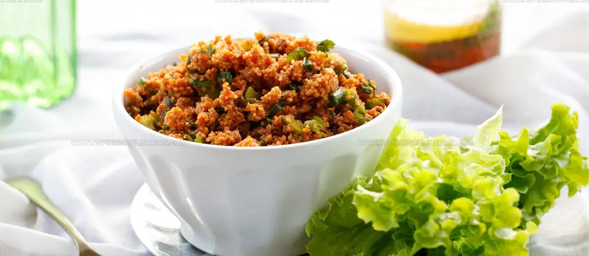 Ksr is a zesty Turkish salad bursting with Mediterranean flavors and combining thin bulgur wheat with fresh herbs and tangy dressing.