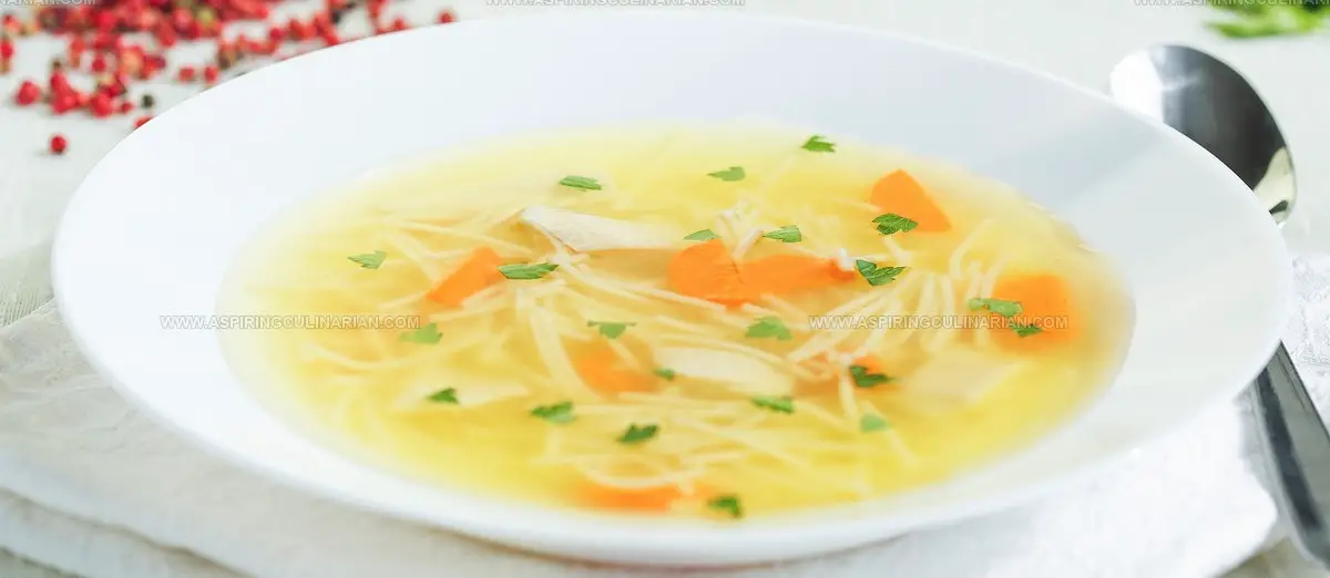 Chicken broth provides a savory base that complements the tender matzah balls.