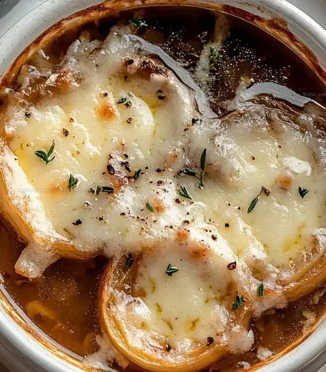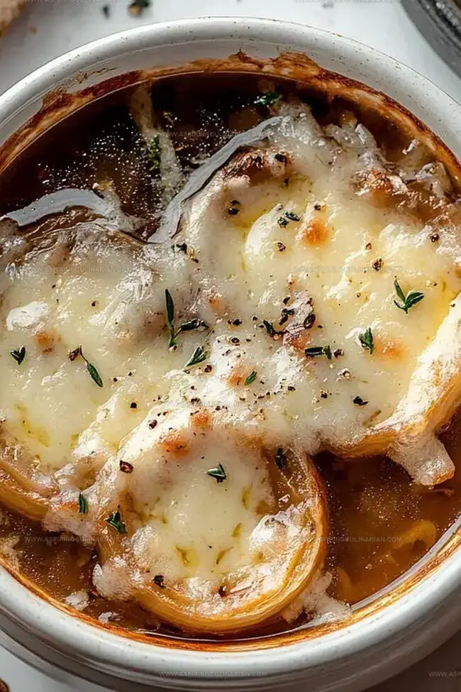 Tender caramelized onions sink into a robust base, creating a soul-satisfying meal.