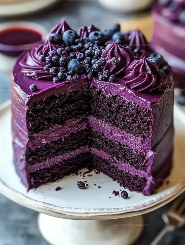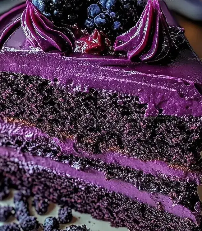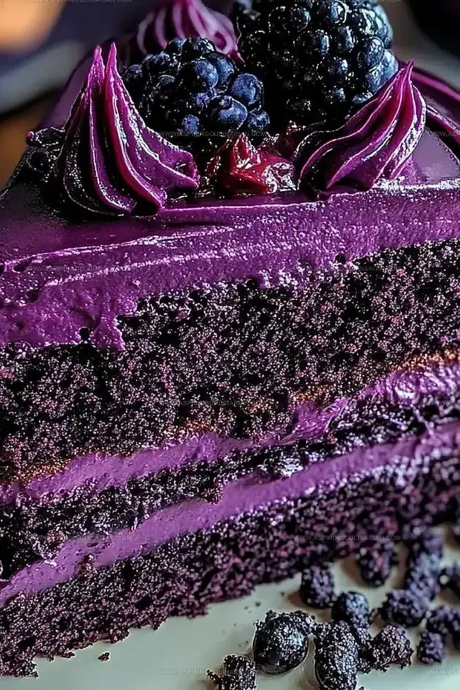 Indulgent purple velvet cake reveals a regal dessert that mesmerizes with its luxurious hue and silky white chocolate frosting. Rich layers melt in your mouth, promising a sensational experience that elevates classic cake traditions with elegant, playful charm.