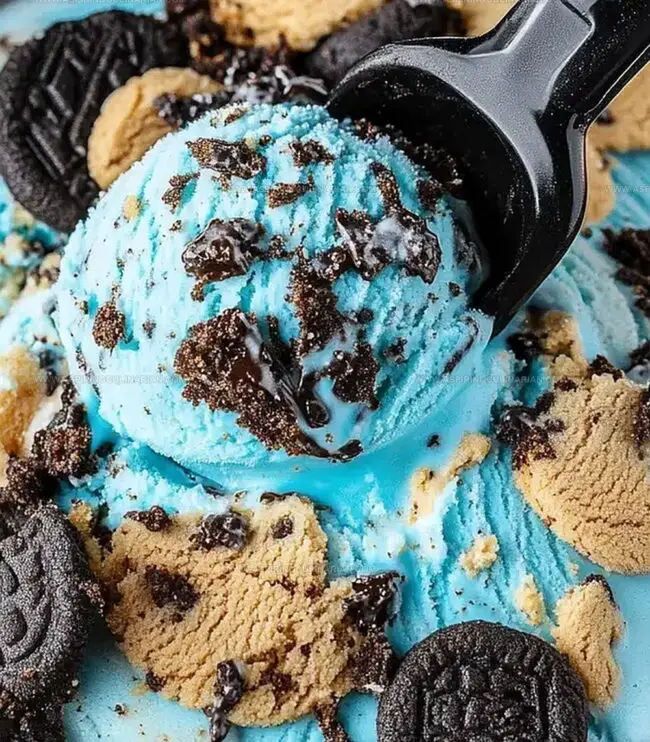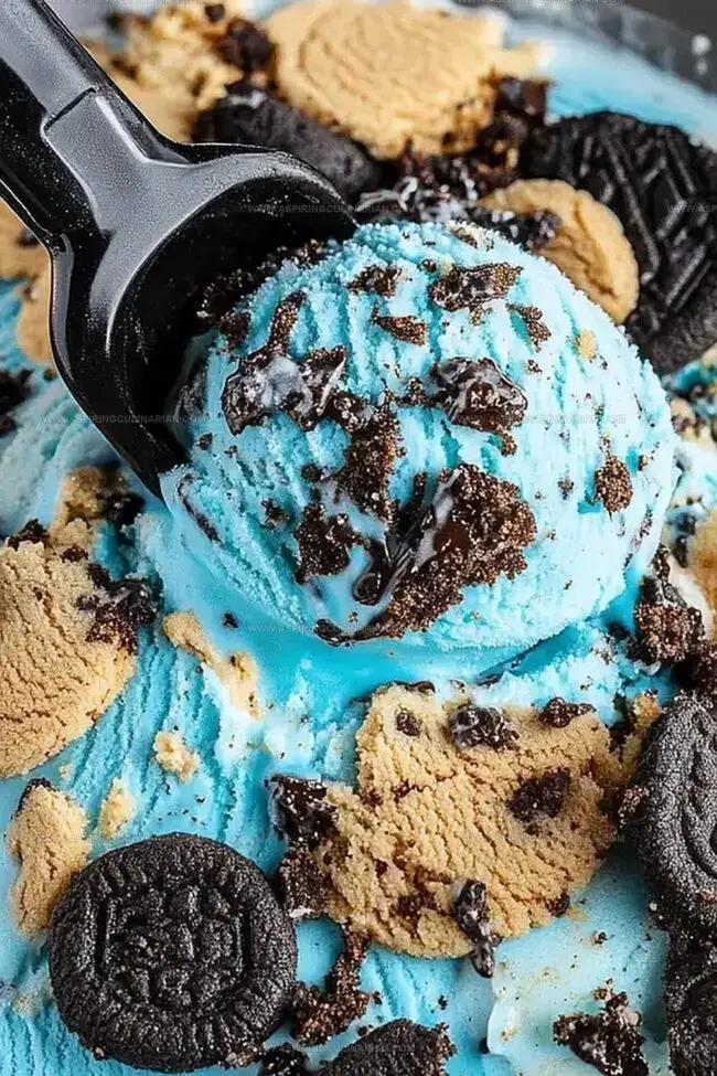 Cookie monster ice cream is a perfect creamy blue delight. Sweet vanilla base packed with cookie chunks creates a playful dessert that delights both kids and adults.