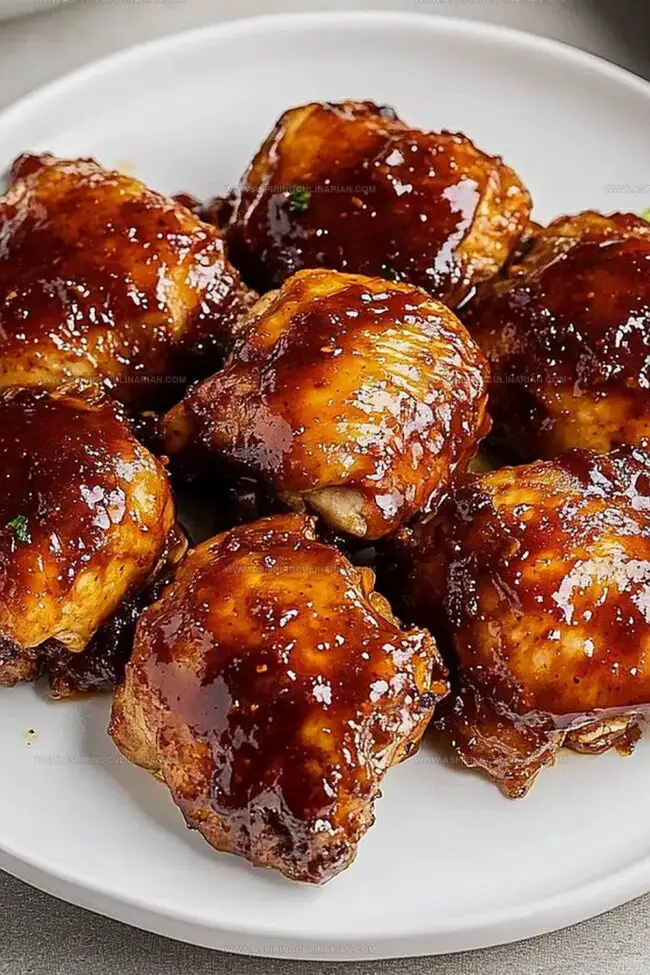 - Verify doneness by checking that chicken is thoroughly cooked and sauce has created a glossy, slightly charred surface.
