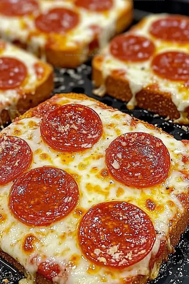 Perfectly toasted bread provides a delicious canvas for classic pizza toppings.