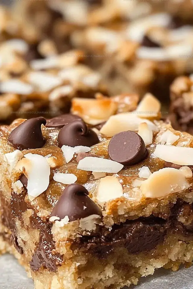 Sweet memories collide with decadent chocolate in this Almond Joy cookie bars recipe that captures the essence of nostalgic desserts.