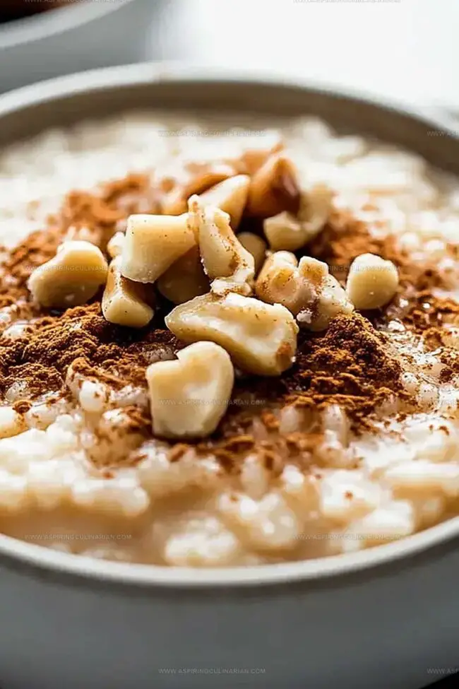 Cinnamon and vanilla dance through each spoonful, creating a symphony of flavor that transports you to sun-drenched regions where this dish originated.