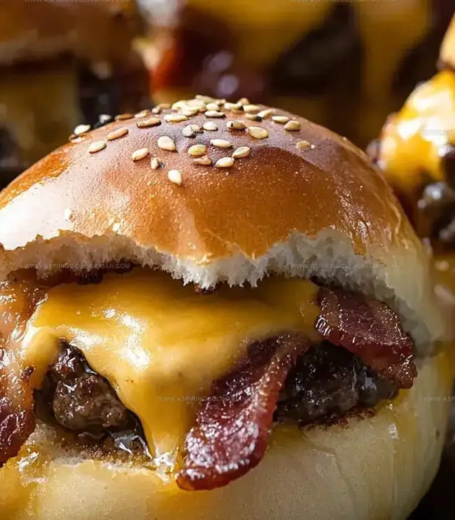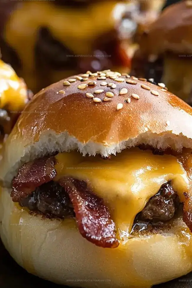 Flavor-packed bacon cheeseburger bombs deliver explosive comfort in one bite. Crispy exterior gives way to melted cheese and savory ground beef, promising a mouthwatering experience you won’t forget.