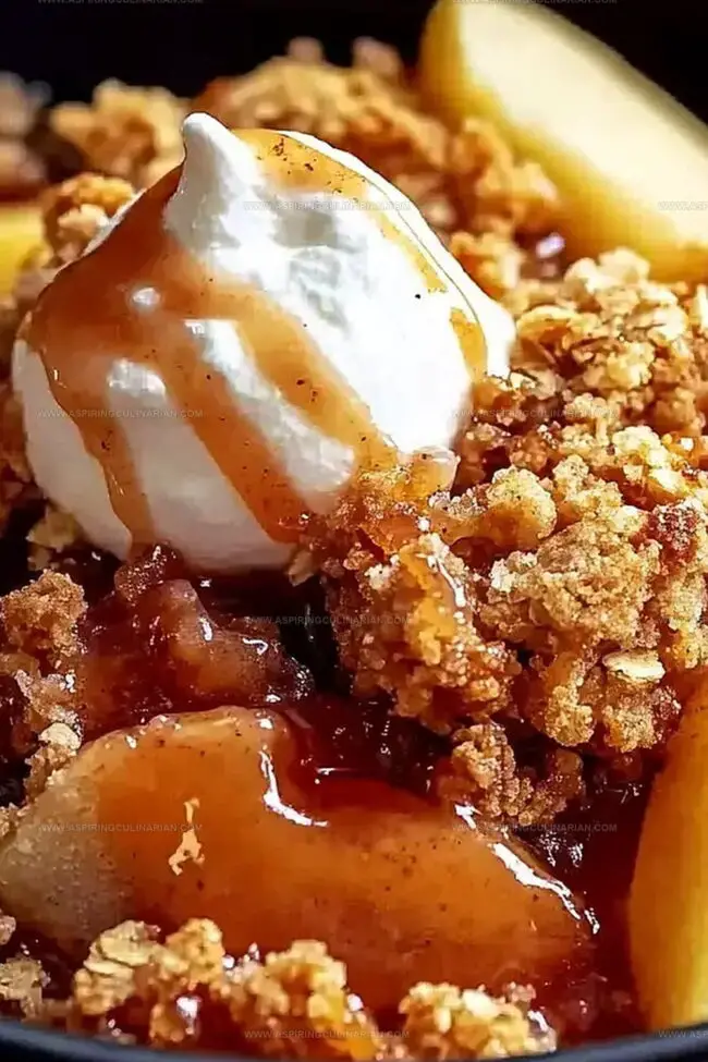 Each spoonful delivers a symphony of textures, tender apples melting underneath a crunchy oat streusel.