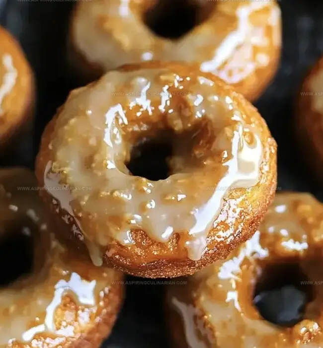 - Immerse each cooled donut into the glaze, allowing excess to drip off, then place on a wire rack to set the glaze completely before serving.