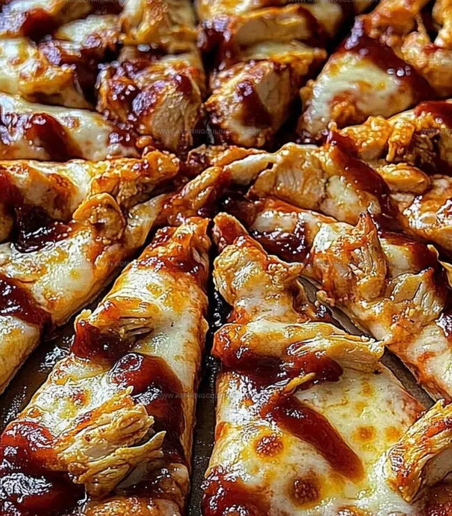 Tender chicken pieces smothered in tangy barbecue sauce create an irresistible topping for pizza lovers.