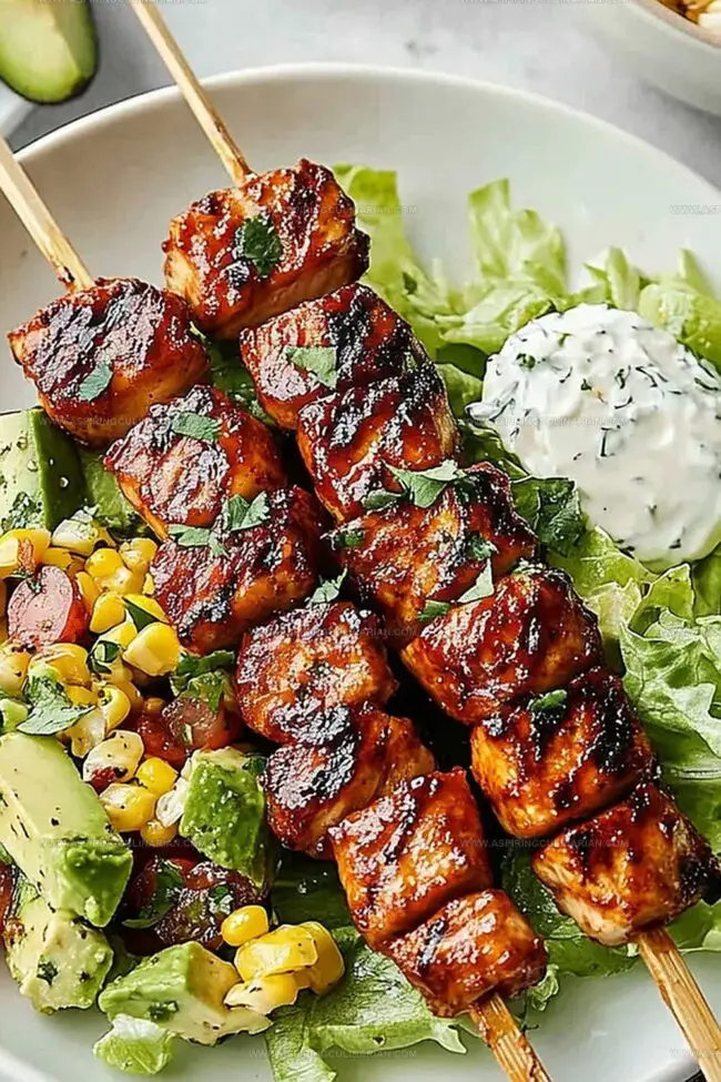 Summer sizzles with this mouthwatering BBQ chicken skewer salad that blends smoky grilled flavors with crisp, fresh ingredients.
