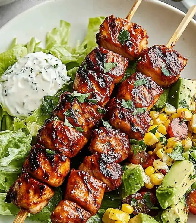 - Plate salad and arrange grilled chicken skewers on top. Drizzle remaining ranch dressing for added moisture and flavor complexity. Serve immediately while chicken remains warm and crisp.