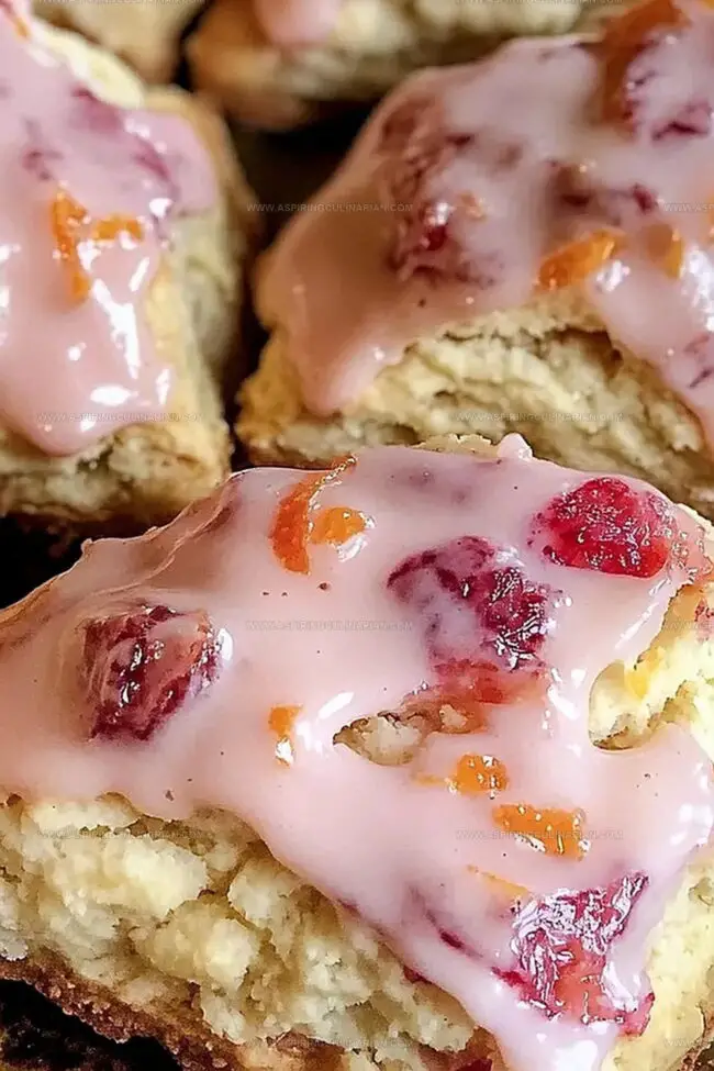 - Finish by generously drizzling the citrusy glaze over the warm scones, creating an appetizing and flavorful topping.