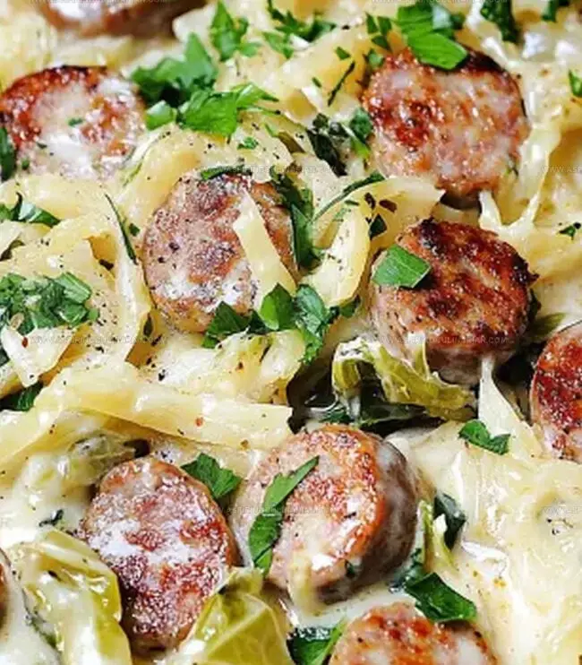 Spicy Cajun sausage dances through creamy alfredo in this hearty cabbage skillet, blending Southern comfort with Italian richness. Hungry home cooks discover a quick, satisfying meal that brings zesty flavors and wholesome ingredients together in one delicious pan.