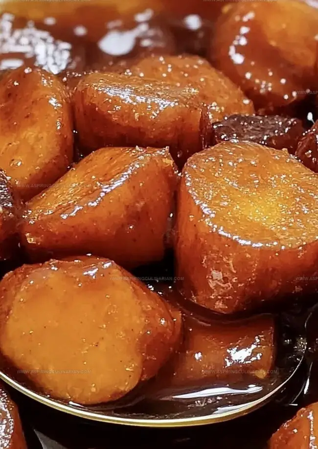 - Stir vanilla into the glossy glaze, then carefully drizzle the entire mixture over the sweet potato slices, ensuring each piece is thoroughly and luxuriously coated.