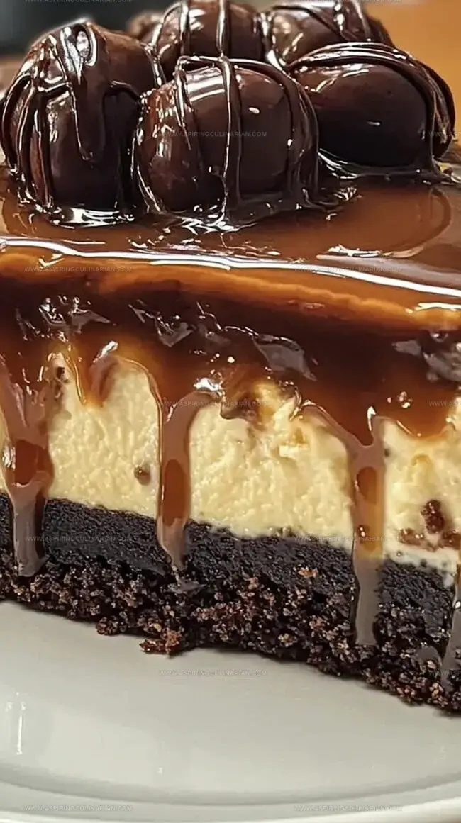 - Slice and serve this luxurious dessert, indulging in the perfect blend of chocolate, caramel, and creamy cheesecake.