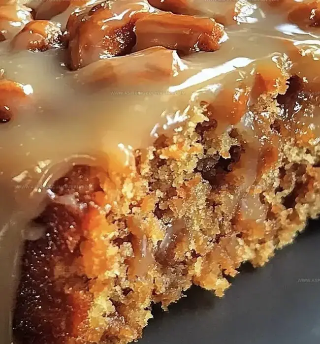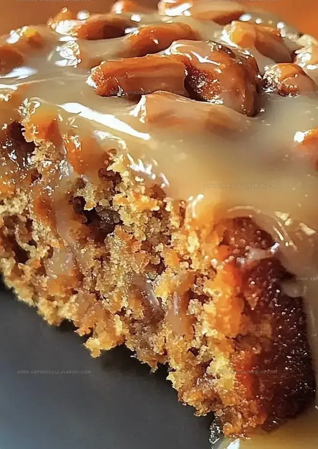 - Drizzle the glaze over the slightly warm cake, allowing it to cascade down the sides naturally. Optional: Garnish with additional chopped pecans or walnuts for extra crunch and visual appeal.