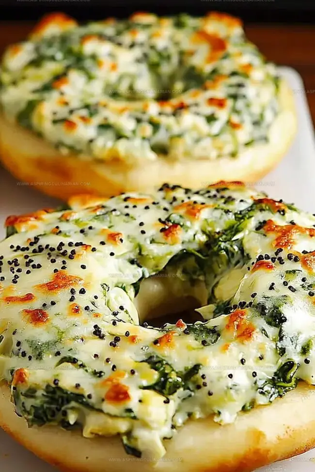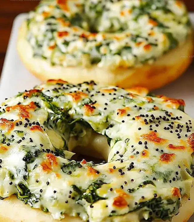 Culinary magic happens when Cheesy Spinach Artichoke Bagels arrive at your table, blending creamy textures with bold Mediterranean flavors. Crisp bagel edges cradle a luxurious blend of melted cheese, tender spinach, and hearty artichokes that will delight you from first bite to last.