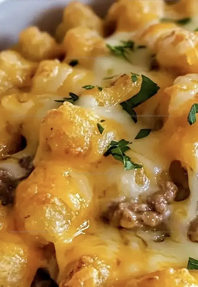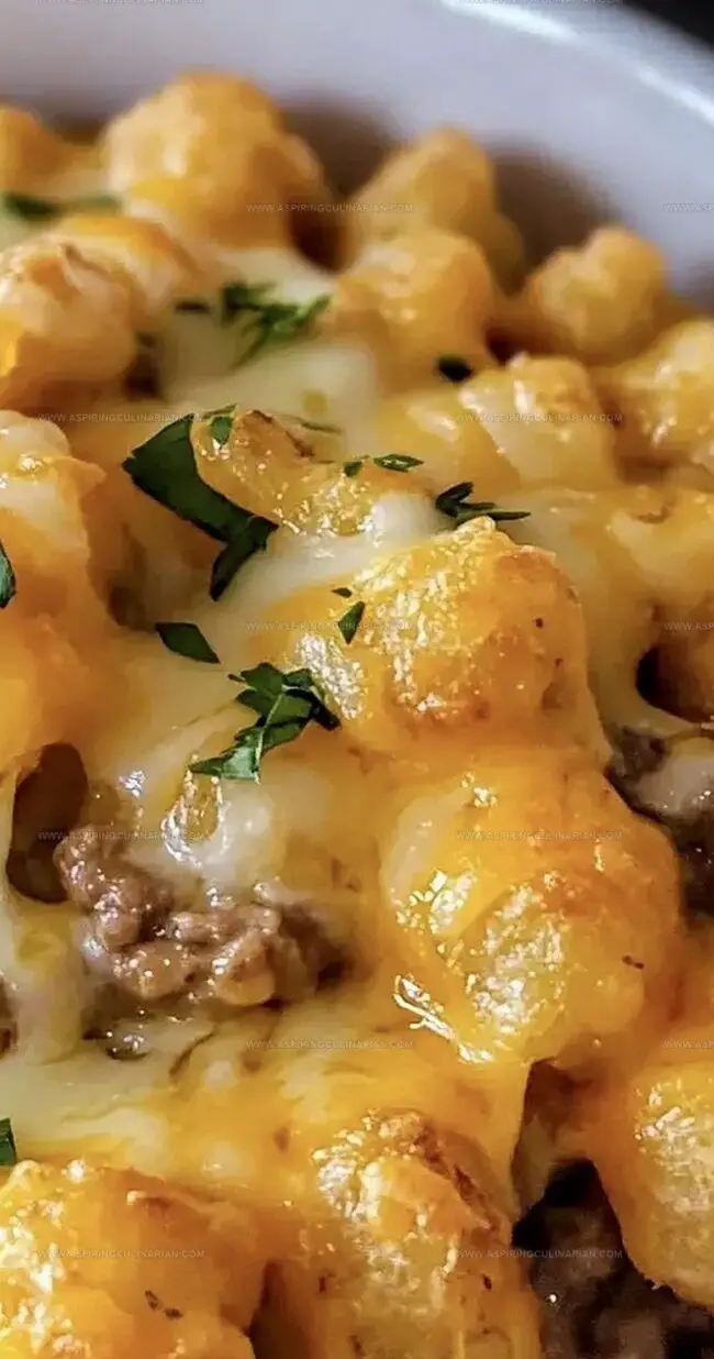 Comfort food reaches new heights with this irresistible cheesy tater tot casserole that promises pure deliciousness.