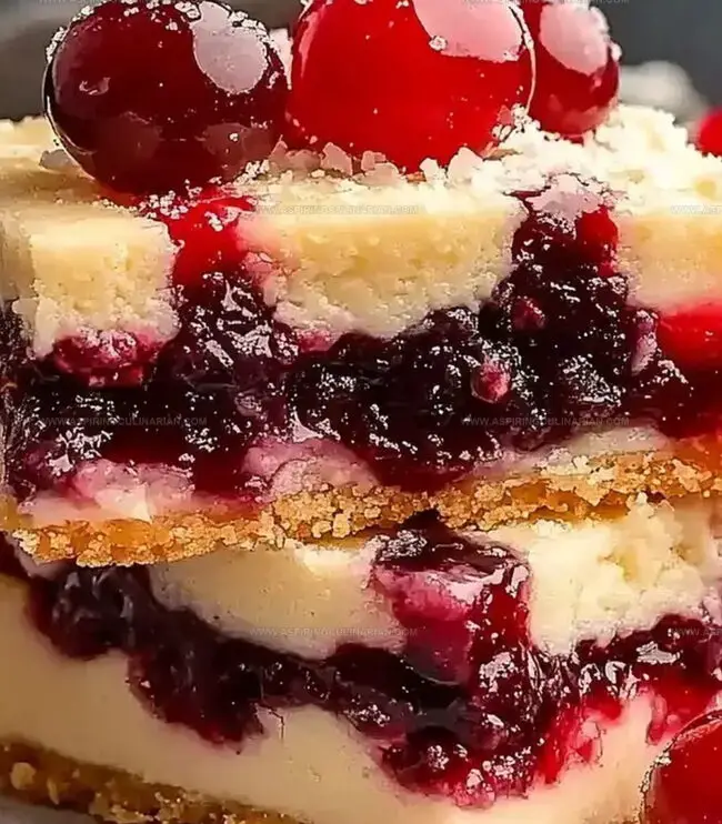 Creamy cherry cheesecake bars blend classic dessert charm with irresistible homemade goodness. Rich cream cheese and sweet cherries create a delightful treat that will make your taste buds dance with pure satisfaction.