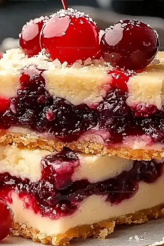 Layers of velvety filling and vibrant cherry topping make these bars a true crowd-pleaser.