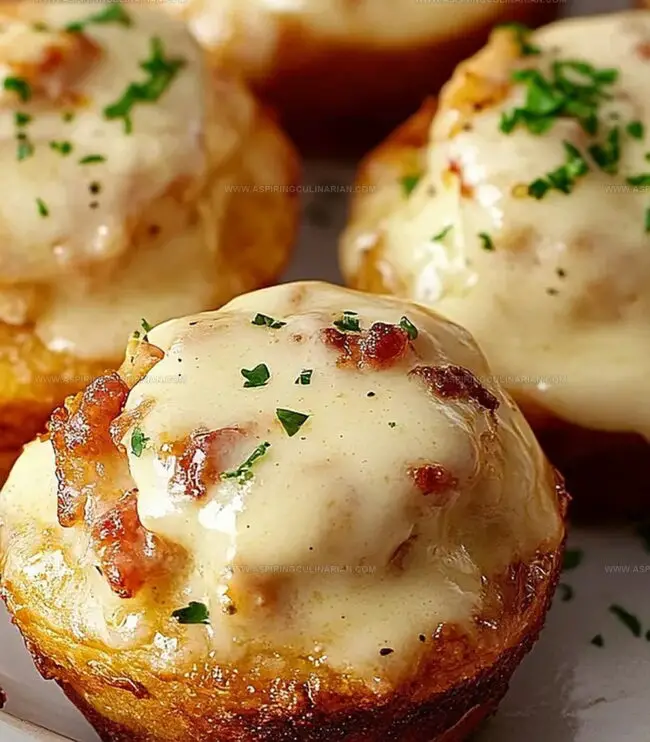- Layer the flavor foundations: sprinkle mozzarella cheese at the base of each dough cup. Add diced rotisserie chicken, followed by a generous dollop of alfredo sauce. Scatter crumbled bacon pieces across the surface. Crown with an additional layer of mozzarella cheese.