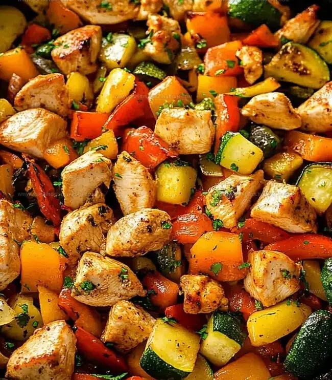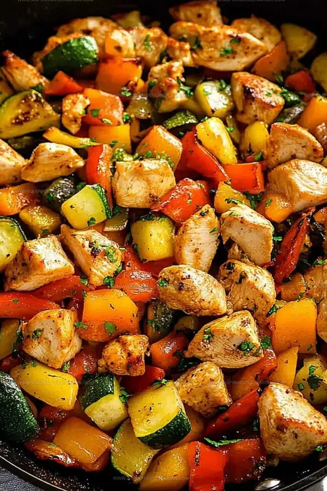 Savory aromas fill the kitchen as this chicken vegetables skillet sizzles with robust flavor and vibrant colors.