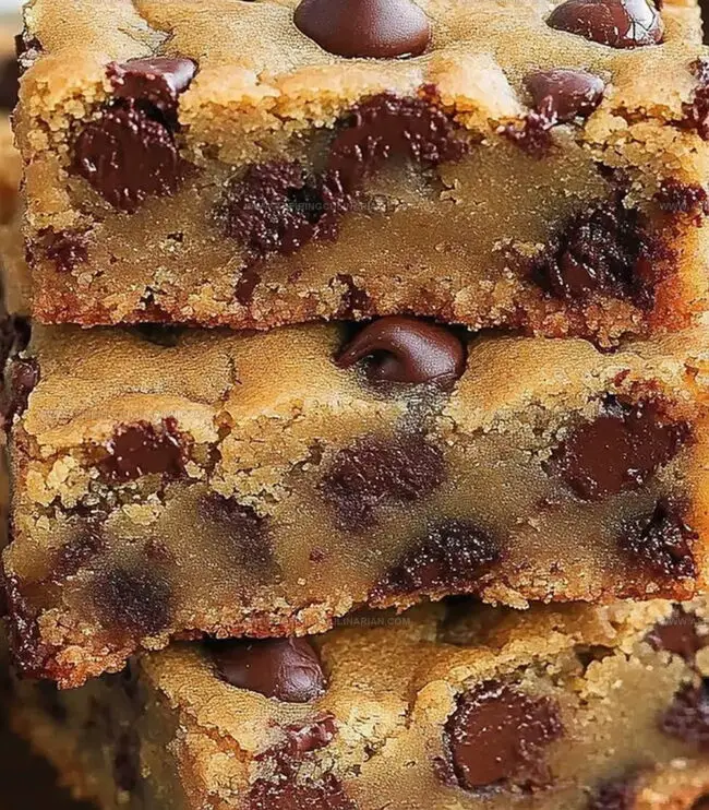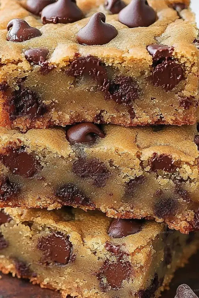 Sweet chocolate chip cookie bars melt hearts with irresistible homemade goodness. Gooey chocolate and buttery dough create pure comfort, inviting friends and family to savor each delectable bite.