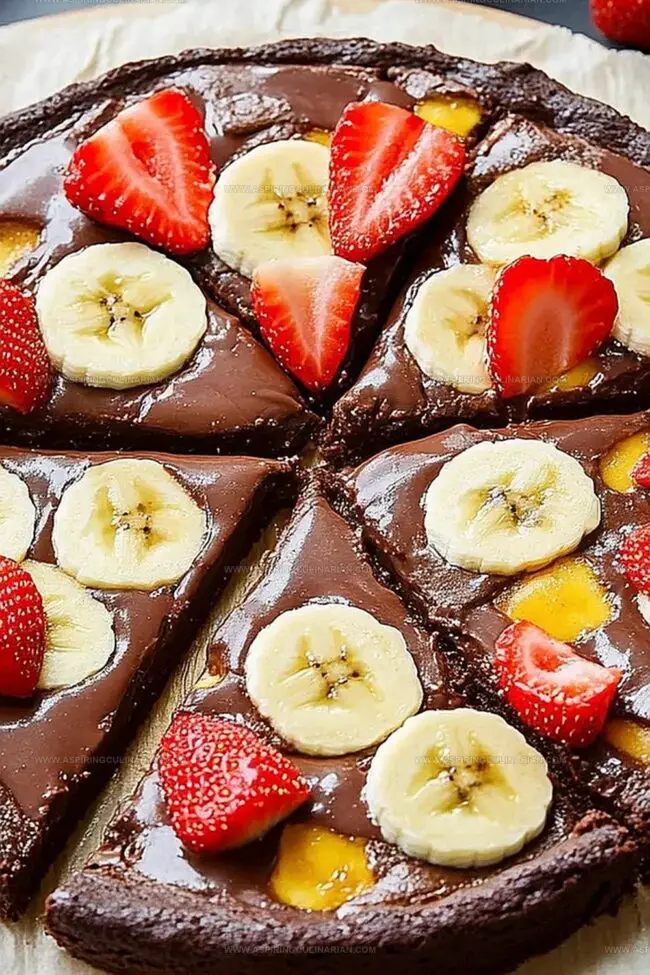 - Slice the brownie pizza into wedge-shaped portions, resembling a traditional pizza presentation.