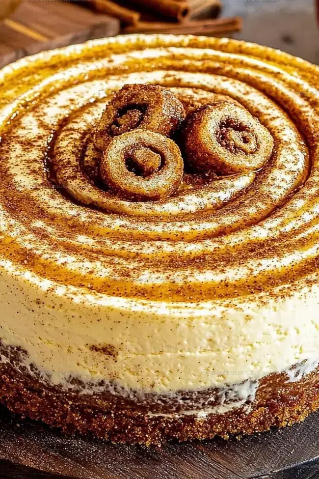 The classic comfort of a cinnamon roll meets the luxurious richness of cheesecake in every delectable bite.