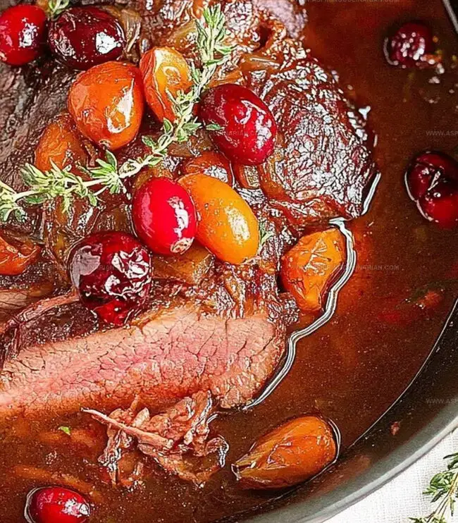 Cranberry balsamic roast brings festive flavors to your holiday table with a perfect balance of tangy and sweet. Succulent meat mingles with rich balsamic glaze and bright cranberry notes, creating a memorable centerpiece that will delight dinner guests.