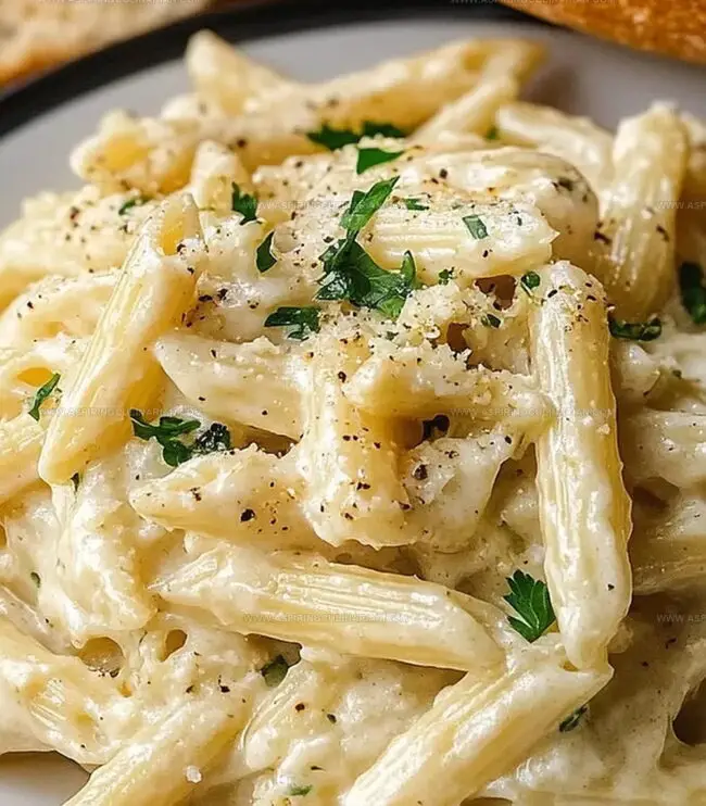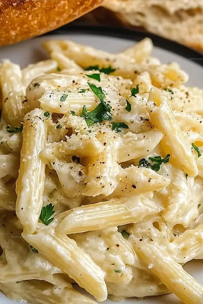 Comfort arrives in a steaming plate of creamy garlic penne pasta that promises pure culinary bliss.