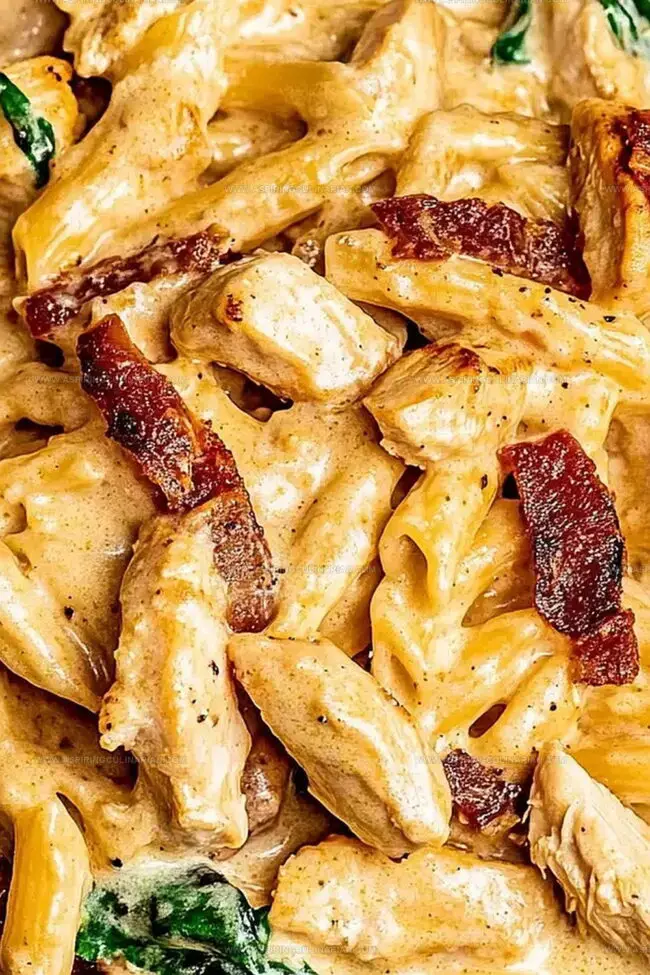- Reintroduce the sliced chicken into the creamy pasta mixture, then gently fold in fresh spinach leaves. Cook for an additional 1-2 minutes until spinach wilts and chicken is thoroughly heated.