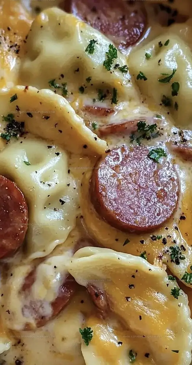 Layers of tender pierogies nestled between savory kielbasa create a mouthwatering combination that satisfies deep hunger.