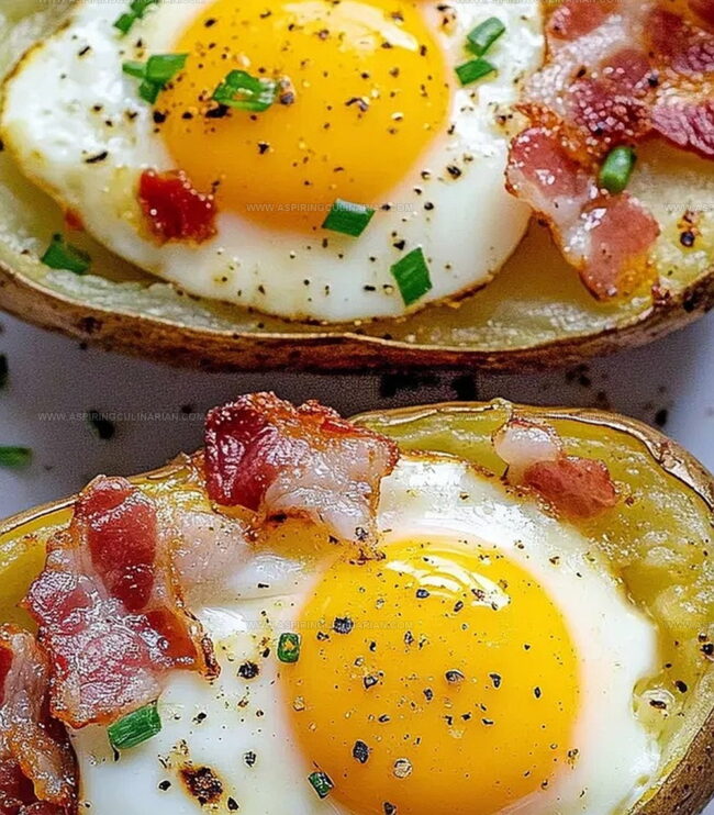 Crispy potato skins cradle a savory double-baked bacon egg masterpiece that promises comfort and flavor in each delightful bite. Hearty ingredients blend seamlessly, offering breakfast lovers a satisfying morning indulgence you won’t want to miss.