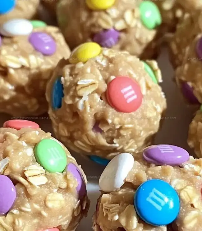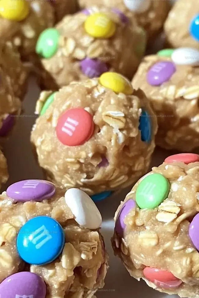 - In the dry ingredient bowl, thoroughly combine oats, white chocolate chips, and pastel M&Ms, creating a colorful base mixture.