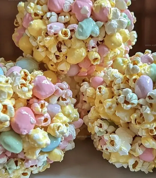 Sweet kernels transform into delightful Easter popcorn balls that sparkle with festive charm.