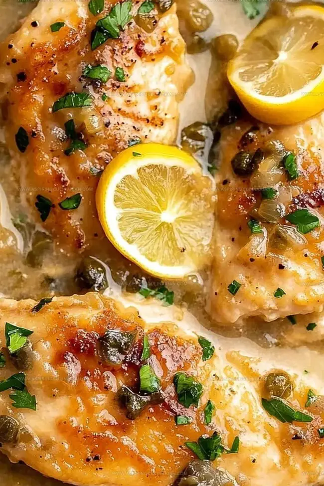 Tender chicken breasts drenched in a zesty lemon piccata sauce bring pure culinary magic to your dinner table.