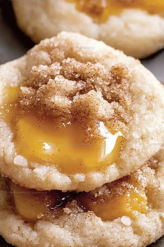 - Transform chilled dough into delicate spheres, rolling each in a fragrant cinnamon-sugar blend. Carefully create a well in the center of each cookie, generously filling with the prepared peach compote. Freeze the assembled cookies to solidify their structure.