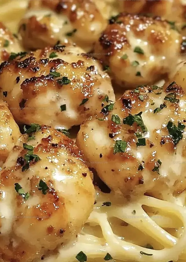 Succulent garlic butter chicken bites dance alongside creamy parmesan pasta, creating a luxurious dinner experience that whisks Italian comfort directly to your plate. Minimal ingredients and quick preparation ensure hearty satisfaction with maximum flavor in every delightful bite.