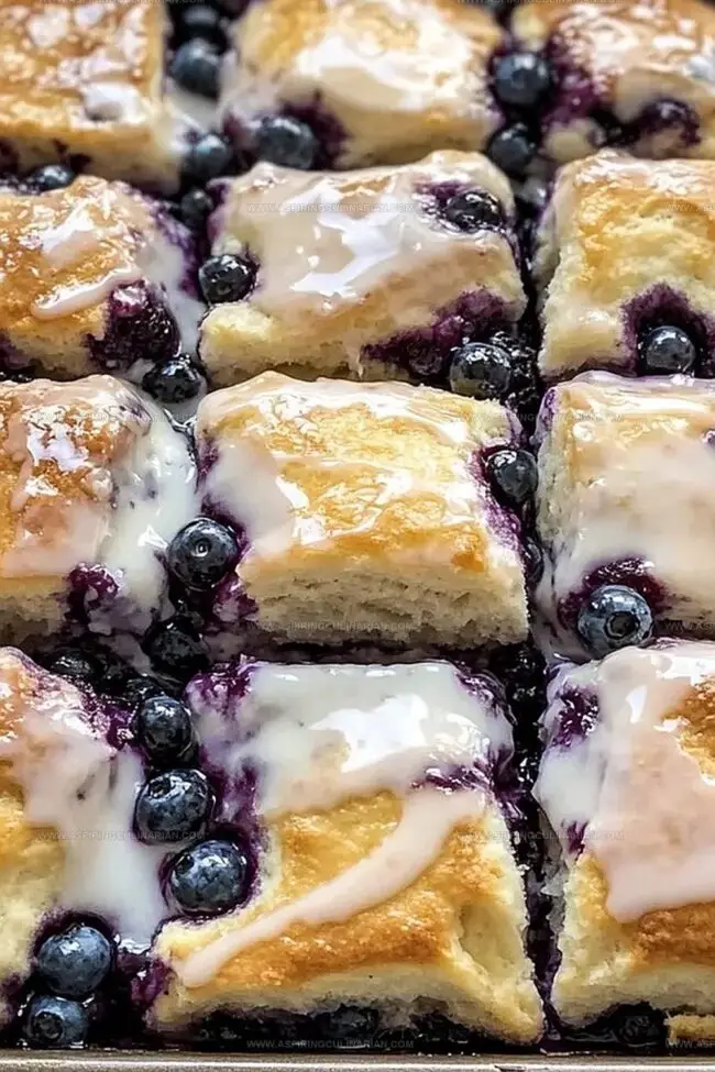Blueberry-packed comfort beckons with these glazed butter swim biscuits that promise pure breakfast bliss.