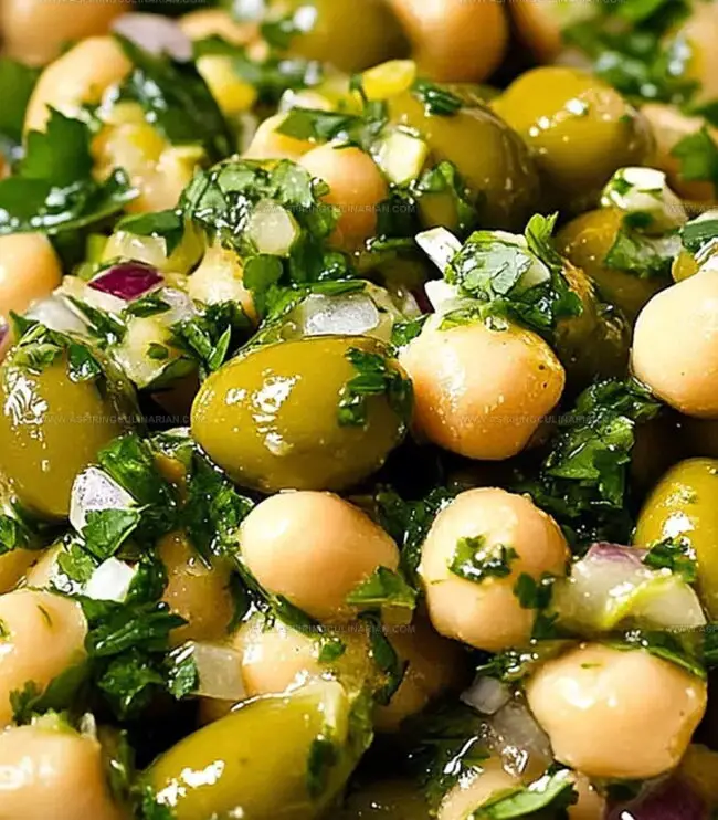 Mediterranean green olive bean salad blends rustic Italian countryside flavors with zesty herb-infused ingredients. Fresh legumes and briny olives create a light, refreshing side dish perfect for summer gatherings or quick weeknight meals.