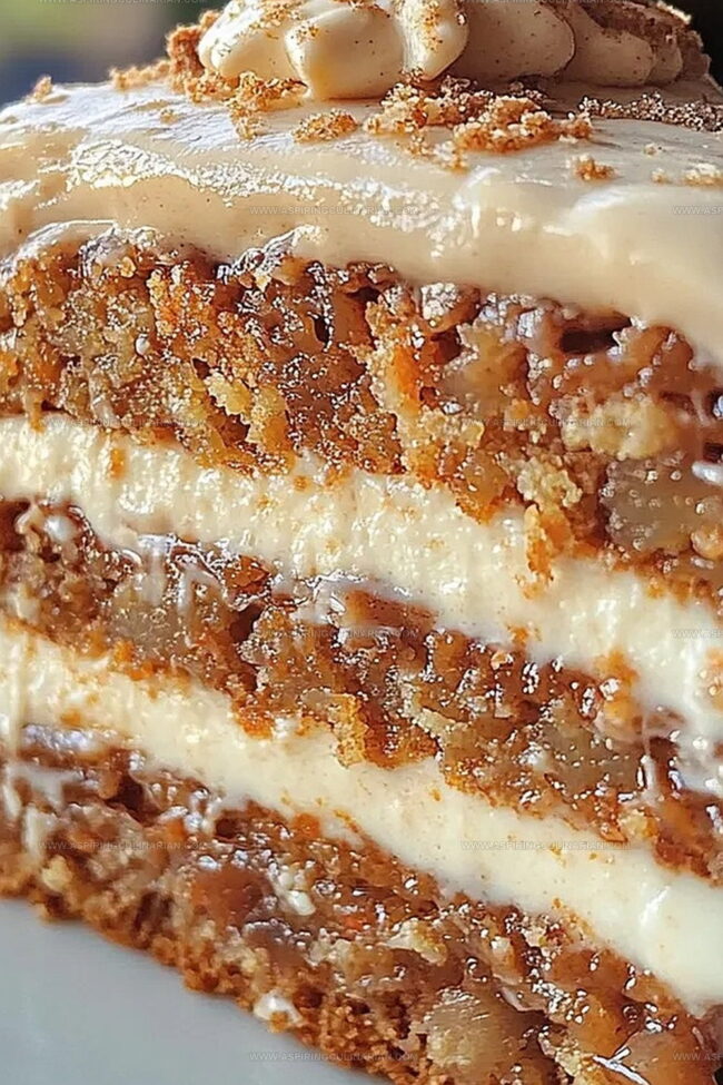 Sweet Southern classic honeybun carrot cake merges creamy cheesecake layers with classic spiced carrot goodness. Warm cinnamon and rich cream cheese frosting invite you to savor this irresistible dessert that brings comfort and indulgence to any gathering.