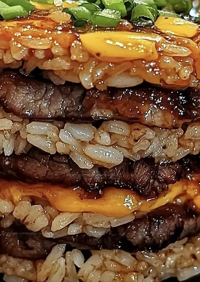 Sizzling Korean BBQ Beef Rice Stack invites culinary adventurers into a world of bold flavors and textures. Succulent marinated beef nestles atop perfectly steamed rice, promising a mouthwatering journey through Korean cuisine you’ll savor with every delicious bite.