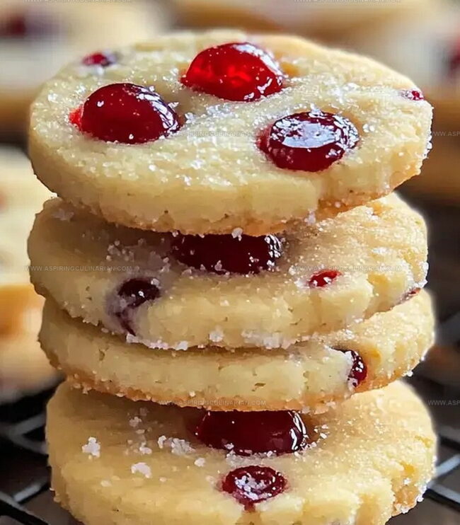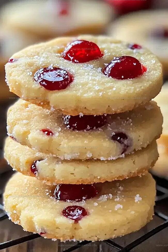 Sweet and buttery maraschino cherry shortbread cookies blend nostalgic flavors with classic baking charm. Delicate crimson bits punctuate rich, crumbly texture, creating an irresistible treat that beckons with each delightful bite.