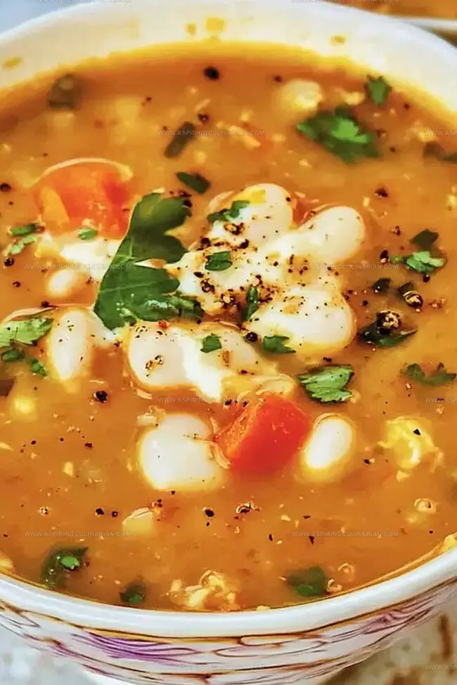 Steaming bowls of comfort rise from this hearty Mediterranean white bean soup that promises warmth and nourishment.