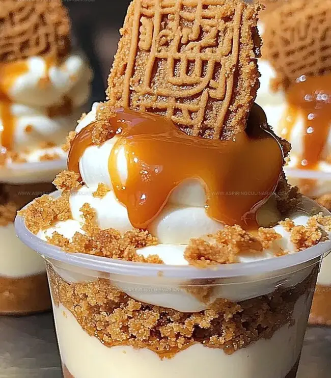 Indulgent mini cookie butter cheesecakes cups blend creamy cheesecake with spiced speculoos cookie goodness. Sweet miniature desserts deliver rich, luxurious comfort perfect for intimate gatherings or solo sweet cravings you’ll savor.