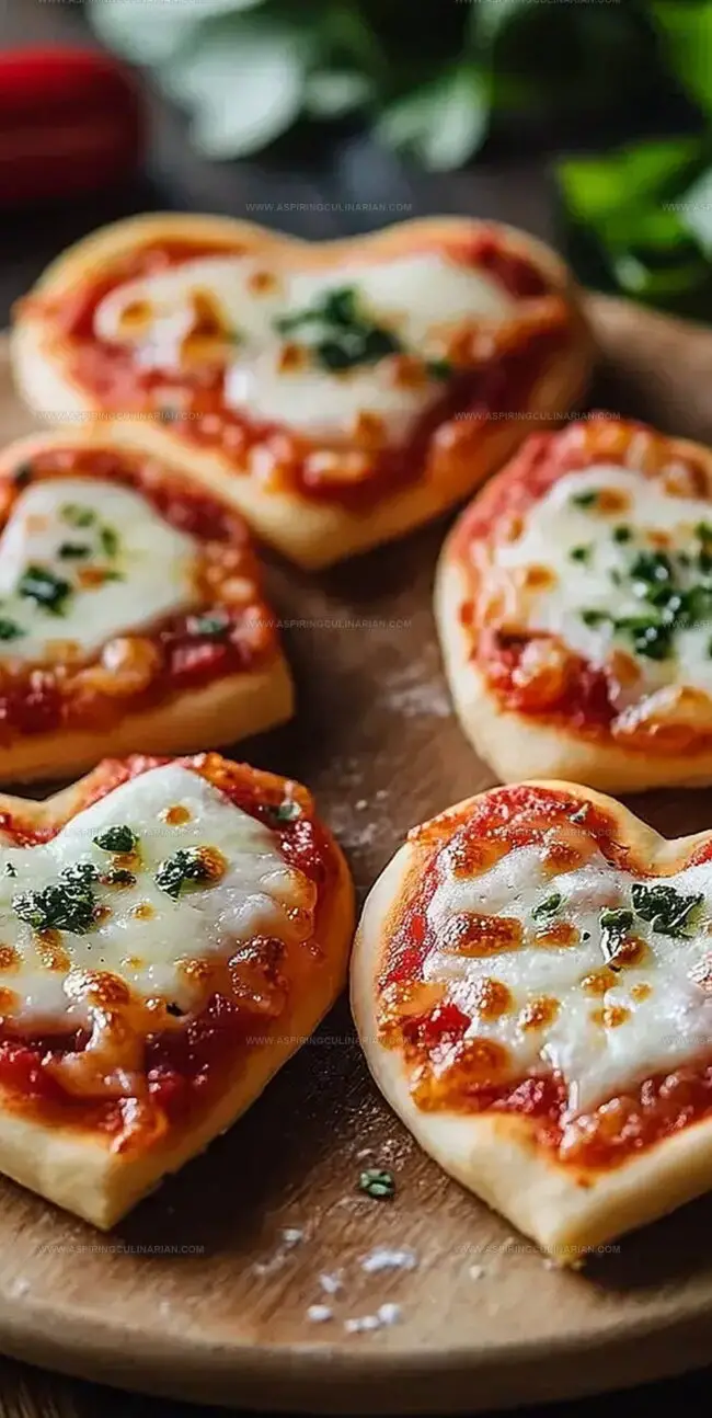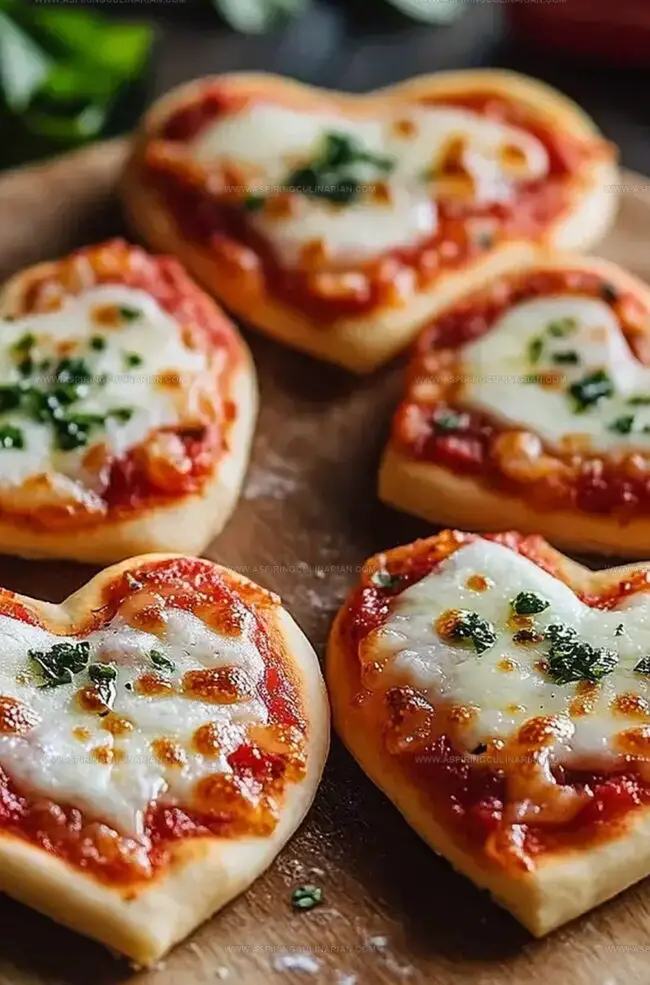 These adorable heart-shaped pizzas capture the essence of love and comfort in every bite.